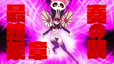 - A revamped version of Nonon's old uniform that looks like a flight suit with an elaborate flight pack. The hat resembles a skull and the wings/engines of the suit itself look like smaller versions of her old uniform. Nonon's forearms and lower legs are encased in white armor resembling ocarinas, and the suit also features extra thrusters above and below the wings. The upper thrusters resemble church organ pipes, while the lower ones resemble recorders. Nonon's armaments include a barrage of rockets fired from her lower thrusters, as well as concussive bass beats fired from its woofers, whether they be pure white streams of musical notes or heart-shaped blasts of sound. It presumably broke down during the COVERS invasion in the wake of the Great Culture and Sport Festival.